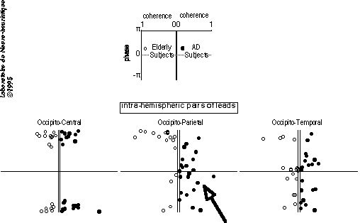 Association of activity between occipital, temporal, parietal, and central regions was measured by intra and inter-hemispheric coherence and phase at the harmonic frequencies. Many functions of the primary visual cortex are preserved in AD patients, whereas occipital to parietal processing and 4th harmonic evoked response are disrupted.