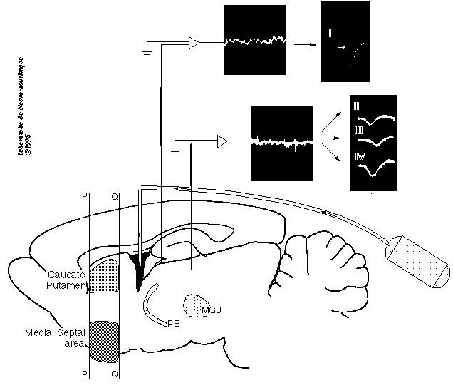 We have tested this hypothesis in the rat auditory thalamus by recording single unit activity in the reticular thalamic nucleus (RE), which is densely innervated by BFCN, and in the medial geniculate body, a nucleus tightly connected with RE, after an intracerebroventricular administration of NGF. Recordings are achieved during both spontaneous as well as acoustically driven firing activity; time domain analyses and cross renewal density histograms are commonly computed.
