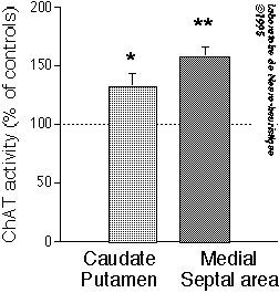 In several species, including man, several cognitive impairments have been associated with loss of integrity of basal forebrain cholinergic neuron (BFCN) functions. Nerve growth factor (NGF), which is known to exert a trophic action on BFCN, can induce a partial reversal of these alterations. On the contrary, in subjects with preserved BFCN functions, NGF administration may induce detrimental effects. The overall outcome of NGF action may relate to its ability to modulate firing properties in brain regions whose activity is, directly or indirectly, regulated by BFCN.